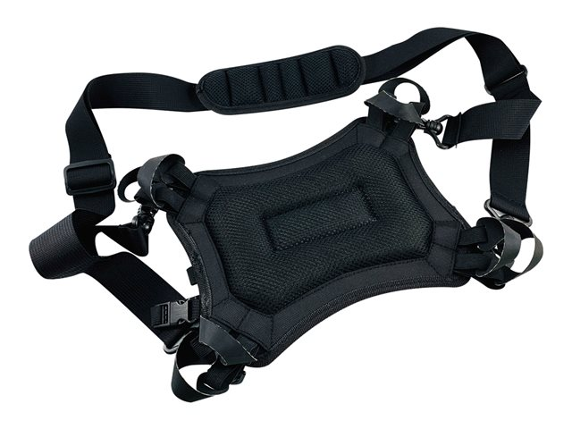 Harnais universel avec support de sangles élastiques et bandoulière tour de cou pour tablette et ordinateur portable.