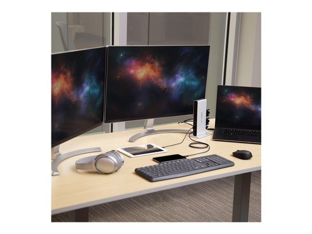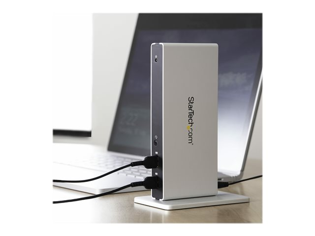 Cette station d'accueil PC USB 3.0 à double affichage transforme votre ordinateur portable en un poste de travail à double affichage grâce à des options de configuration flexibles.