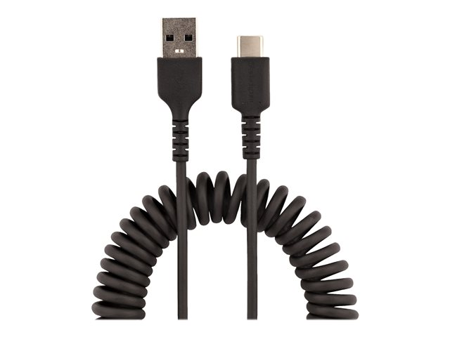 Cordon USB USB-C Enroulé à Usage Intensif - Câble USB-A vers USB-C en Fibre Aramide Robuste - Chargeur USB-C M/M - Adaptateur TB3 Noir (R2ACC-50C-USB-CABLE) - Câble USB - USB (M) pour 24 pin USB-C (M) - USB 2.0 - 3 A - 50 cm - bobiné - noir