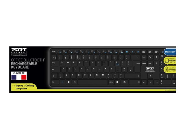 Le clavier professionnel rechargeable Bluetooth de PORT Connect est doté de touches ciseaux confortables et précises avec un design ultra-fin et élégant. Libérez-vous des piles grâce à son système de recharge via USB-C. Une charge complète peut durer jusqu'à 2 mois. La longévité de la batterie est optimisée grâce à son bouton ON/OFF et à sa technologie Bluetooth basse énergie. Profitez d'une portée d'utilisation jusqu'à 8 mètres pour une grande liberté de mouvement. Bénéficiez d'une expérience fluide et réactive grâce à ses touches de raccourcis et ses indicateurs LED. Compatible avec les appareils Windows, Mac OS, iOS et Android.
