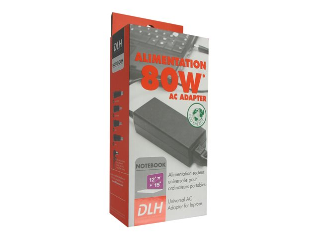 Description du produit DLH DY-AI1265T - adaptateur secteur - 80 Watt Type de périphérique Adaptateur secteur - externe Poids 210 g Tension d'entrée CA 100/240 V Tension de sortie 19 V Capacité d'alimentation 80 Watt Accessoires inclus 5 embouts de connexion Dimensions (LxPxH) 4.5 cm x 10.5 cm x 3 cm Garantie du fabricant Garantie de 2 ans -