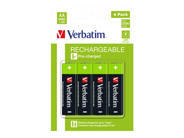 Les piles Verbatim AA sont les plus courantes. Utilisations recommandées : périphériques comme les radios portables, les lecteurs MP3, les appareils photo et les télécommandes pour TV/DVD.