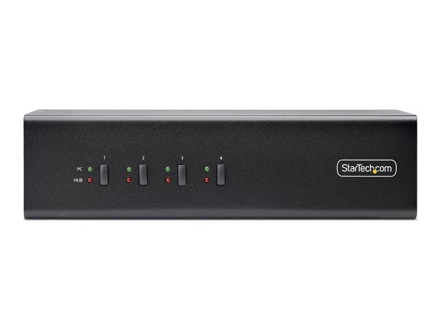 StarTech.com 4-Port Dual-Monitor DisplayPort KVM Switch, 4K 60Hz, 2x USB 5Gbps Hub Ports, 2x USB 2.0 HID Ports, Hotkey and Push-Button Switching, TAA Compliant