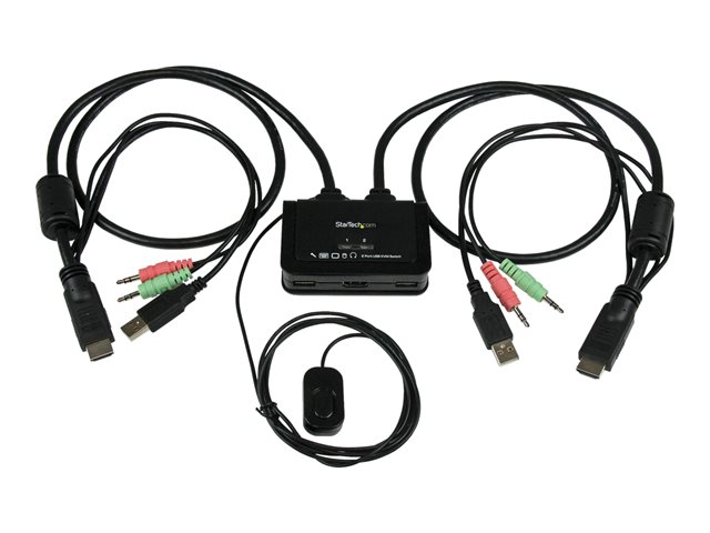 Le commutateur KVM HDMI à câble 2 ports avec audio et commutation distante SV211HDUA vous permet de contrôler 2 PC compatibles HDMI, USB à l'aide d'un seul jeu d'écran, de clavier, de souris et de périphériques audio.